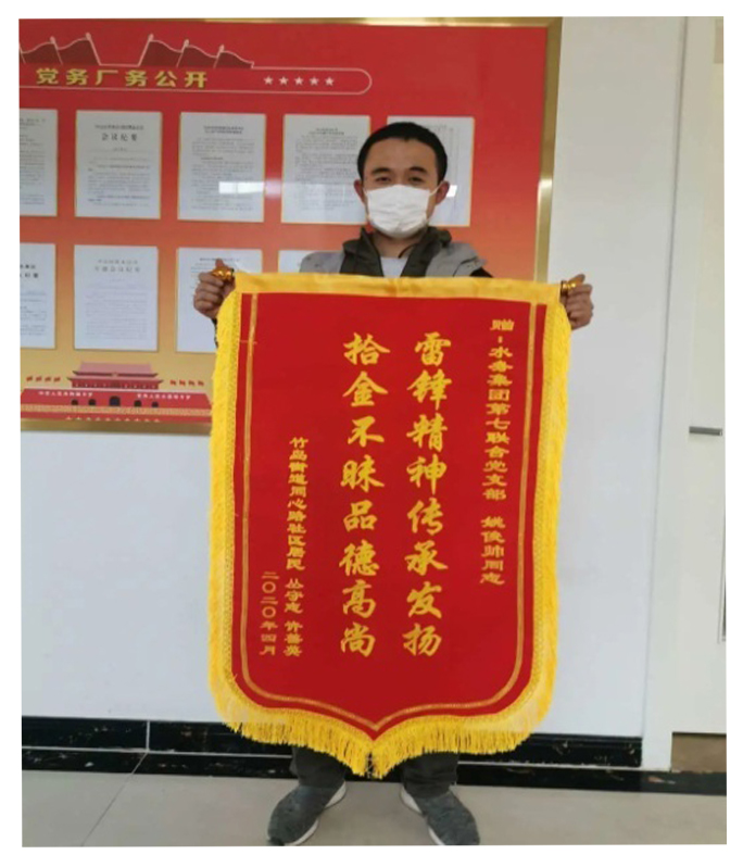 4月22日,同心路社區(qū)負(fù)責(zé)人陪同市民許善英大姨,將一面“拾金不昧品德高尚,雷鋒精神傳承發(fā)揚(yáng)”的錦旗和一封親手書寫的感謝信送到市水務(wù)集團(tuán)黨委,對(duì)集團(tuán)黨委第七聯(lián)合黨支部黨員姚俊帥同志拾金不昧的行為表示真摯感謝。原來(lái),姚俊帥在參加黨員志愿服務(wù)活動(dòng)的返回途中,撿到了許大姨的金手鐲,經(jīng)過(guò)多方查找,找到了失主許善英。這個(gè)手鐲她佩戴多年,不僅價(jià)值不菲,更具有紀(jì)念意義,有著很深的感情。“拾金不昧,特別是這么貴重的物品,以前只是在新聞里看到,現(xiàn)在自己親身體驗(yàn)到這種正能量,我心里特別激動(dòng),真的非常感謝水務(wù)集團(tuán)黨委培養(yǎng)出這么好的黨員,這么樸實(shí)的職工”,許大姨和社區(qū)負(fù)責(zé)人當(dāng)著公司有關(guān)領(lǐng)導(dǎo)的面贊不絕口。