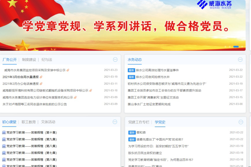 結(jié)合慶祝“三八”婦女節(jié),在集團內(nèi)部開展了“學(xué)黨史、講廉潔、話家風(fēng)”主題征文活動,引導(dǎo)廣大女職工從黨史中汲取精神力量,在集團上下營造起知廉、守廉、助廉的濃厚氛圍。組織各黨支部結(jié)合“三會一課”、主題黨日等,靈活開展黨史學(xué)習(xí)教育,進一步提升組織生活質(zhì)量。第二聯(lián)合黨支部開展了“黨史大家談”活動,每月組織部分黨員圍繞學(xué)習(xí)貫徹總書記重要講話精神、提升本職工作成效,暢談學(xué)習(xí)體會及思路打算,并開展研討交流,目前已開展2期;第五聯(lián)合黨支部開展了“報告初心、爭做模范”主題活動,結(jié)合學(xué)習(xí)黨史及先模人物事跡,圍繞“入黨初心為什么、立足崗位做什么、畢生心愿是什么”報告入黨初心,交流立足崗位爭做模范的認識、實踐和收獲;經(jīng)區(qū)供水公司黨支部結(jié)合“雙報到”活動,聯(lián)合金城社區(qū)共同舉辦黨史知識競賽,堅持以賽促學(xué),進一步提升學(xué)習(xí)黨史的積極性、主動性。三是講好水務(wù)故事